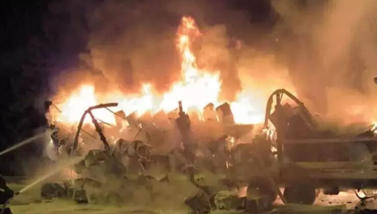 Kocaeli’de TEM otoyolunda beyaz eşya yüklü bir TIR alev alev yandı. Trafiğin de aksamasına neden olan yangında TIR’ın dorsesi demir yığınına döndü.