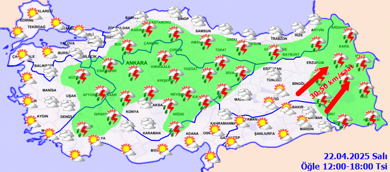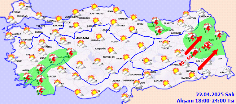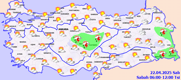 Meteoroloji Genel Müdürlüğü (MGM) 22 Nisan hava durumu raporunu yayımladı.