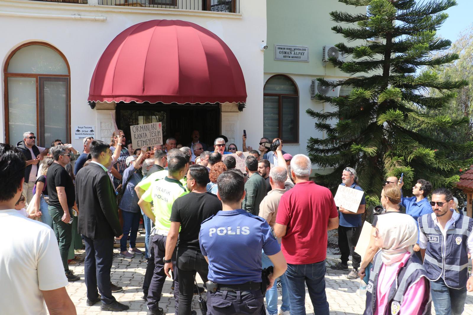 Kaş Orman İşletme Müdürlüğü’nün bugün saat 10.30’da yapılacağını duyurduğu ihale öncesinde bir araya gelen vatandaşlar Gerenlik Koyu’nun yapılaşmaya açılmak istenmesini protesto ederek ihalenin iptal edilmesini istedi. Bu sırada iki ayrı şirketin yetkilileri ihaleye teklif sunmak için Orman Misafirhanesi önüne geldi. İçeri girmeye çalışan şirket yetkililerine vatandaşlar tepki gösterince polis müdahale ederek içeriye girmelerini sağladı. Protestocu vatandaşlar ellerinde taşıdıkları döviz ve sloganlarla ihalenin iptaline yönelik taleplerini yinelemesinin ardından ihale iptal edildi.