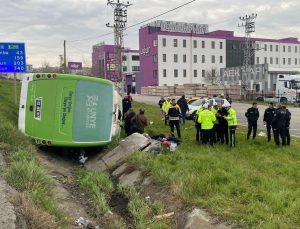 Kazada yaralanan olmazken yol kenarında bekleyen 33 yolcu, farklı firmaya ait otobüsle kent merkezine götürüldü.